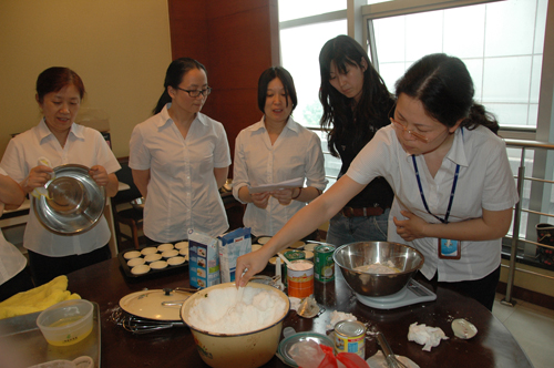 忙活了大半天,蛋撻終于出爐了,金黃松脆、香飄四溢的蛋撻,受到了同事們的熱心青睞。