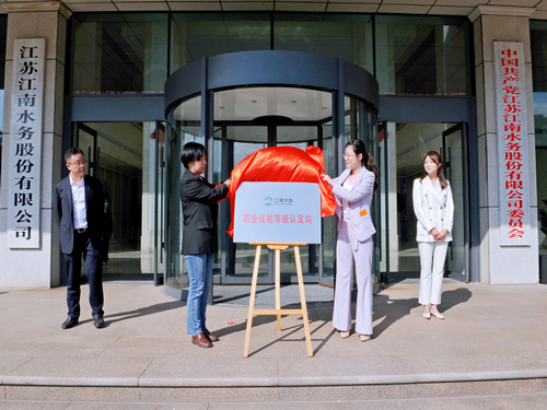 江陰市人力資源和社會(huì)保障局黨委委員、副局長(zhǎng)居琳,江陰市總工會(huì)副主席張艷,江陰市公用事業(yè)服務(wù)中心副主任張琦受邀參加儀式。儀式由公司副總經(jīng)理高立主持,公司黨委副書記、總經(jīng)理池永致辭,居琳和張艷共同為江南水務(wù)職業(yè)技能等級(jí)認(rèn)定站揭牌。
